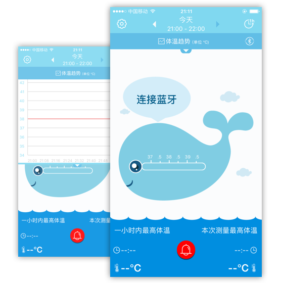 電子體溫計是一款監測嬰幼兒體溫變化的智能體溫計,與APP配合使用,可實時查看體溫變化并繪制體溫曲線圖。 掃一掃二維碼: